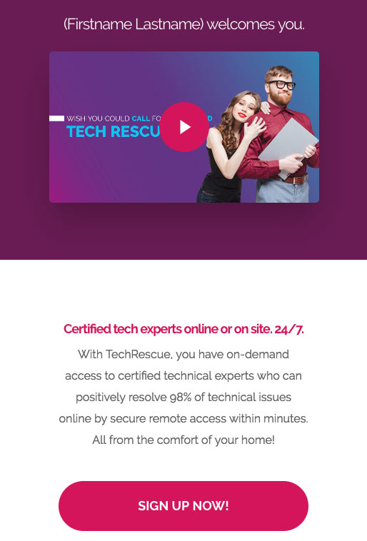 LINKS TO FULL ENROLLMENT. Use these links to share TechRescue with your prospects. These links go to a page with the video, a brief description of the product, a lead capture page and an enrollment link. This is a great follow-up tool, a pique interest tool, or a direct link for someone interested in one specific service.